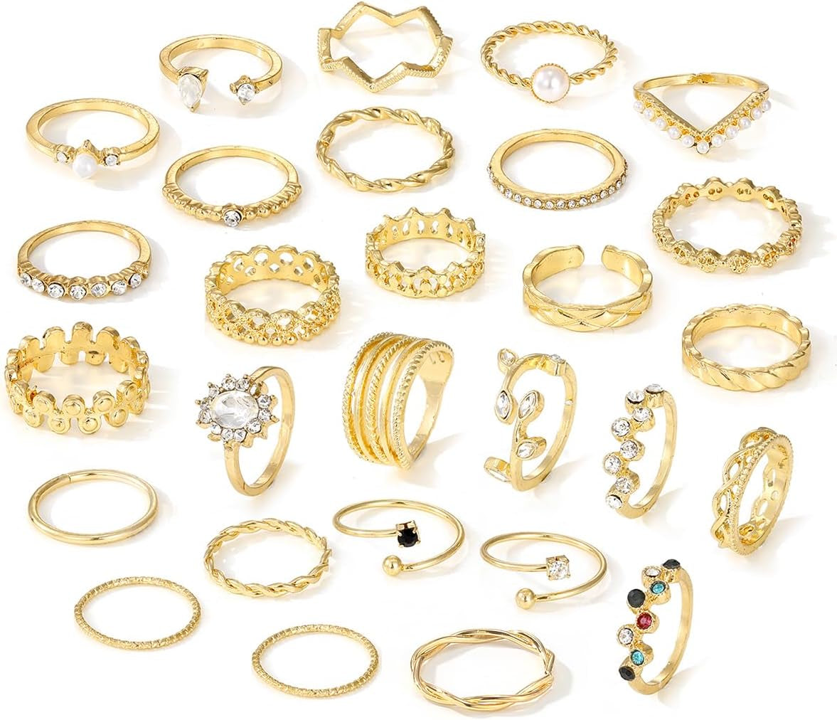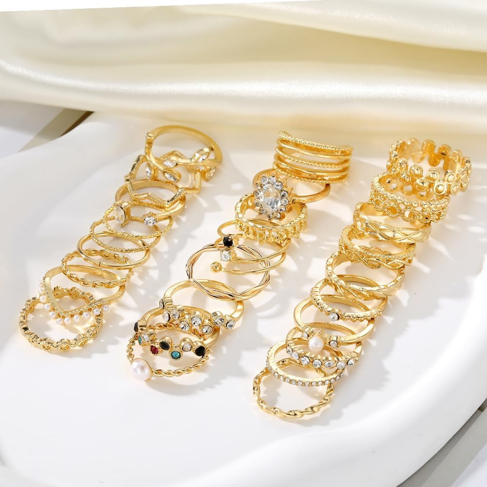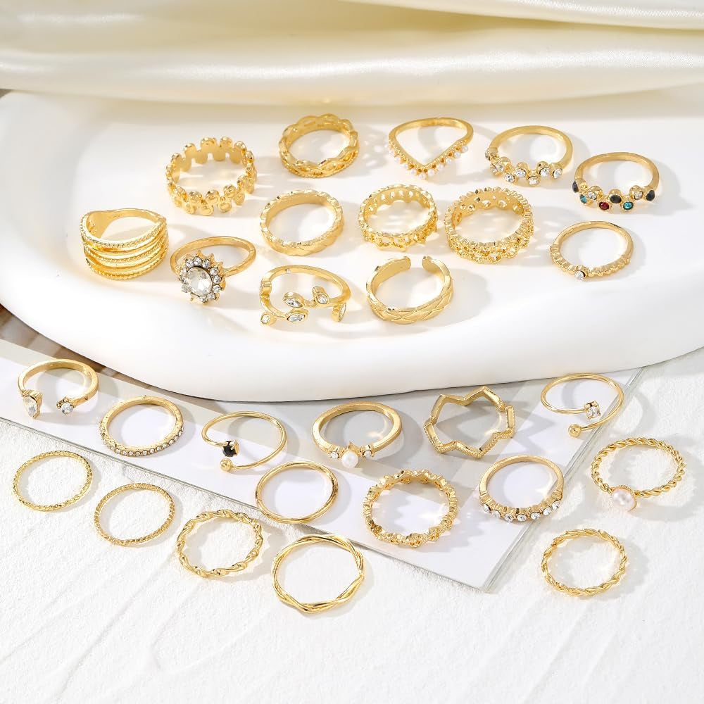 Souverel 28-Piece Golden Ring Set – Hypoallergenic, Elegant and Perfect for Daily Stacking