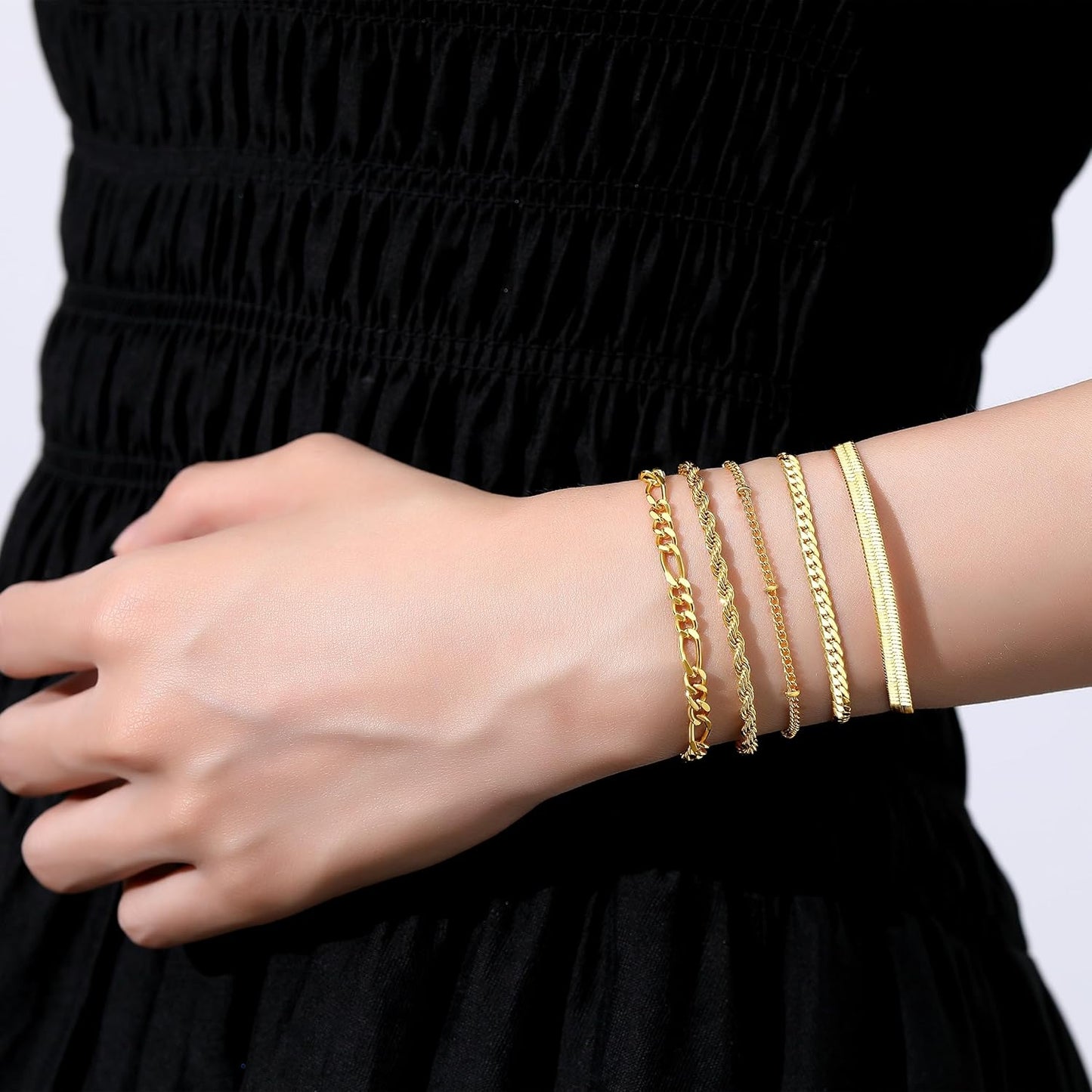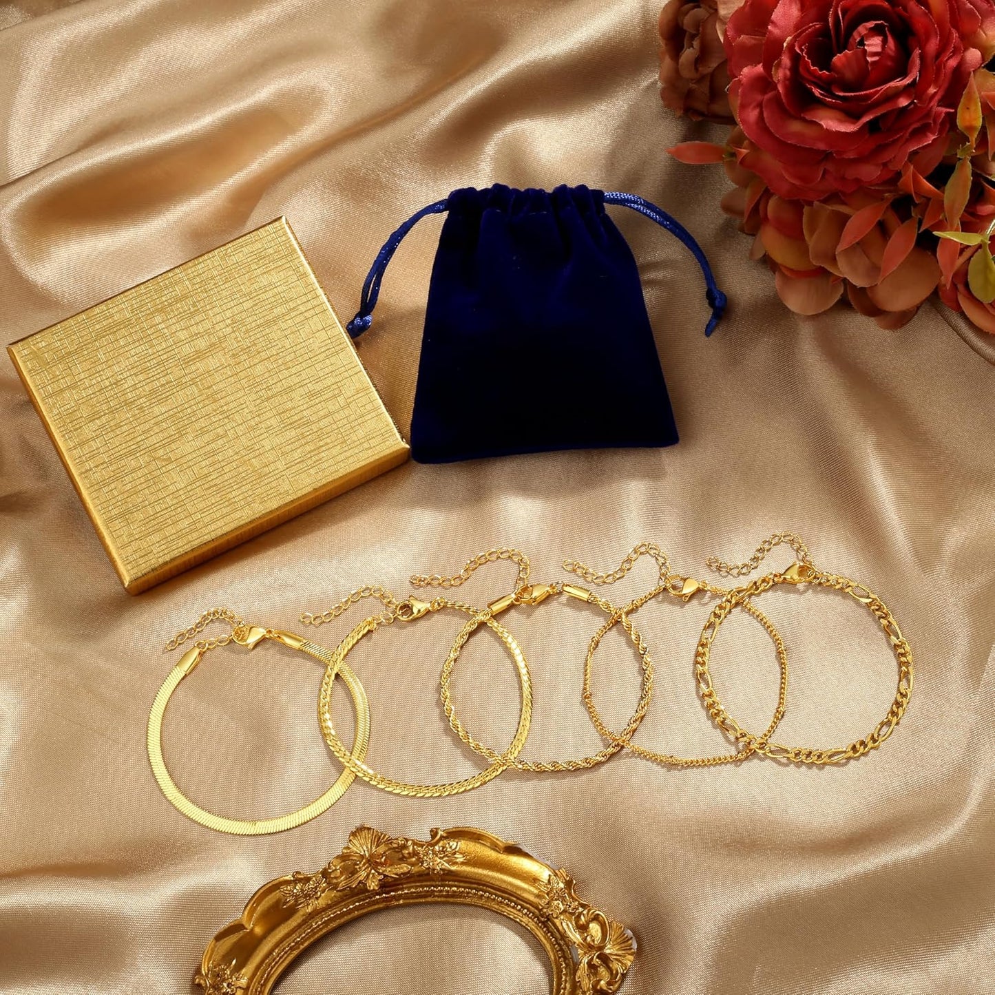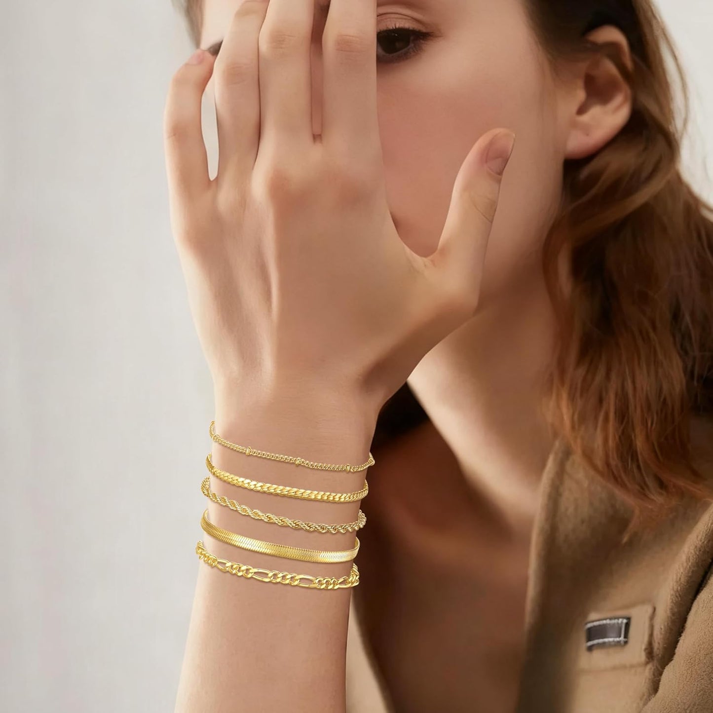 Souverel 5-Piece Stackable Bracelet Set – 14K Gold Plated,