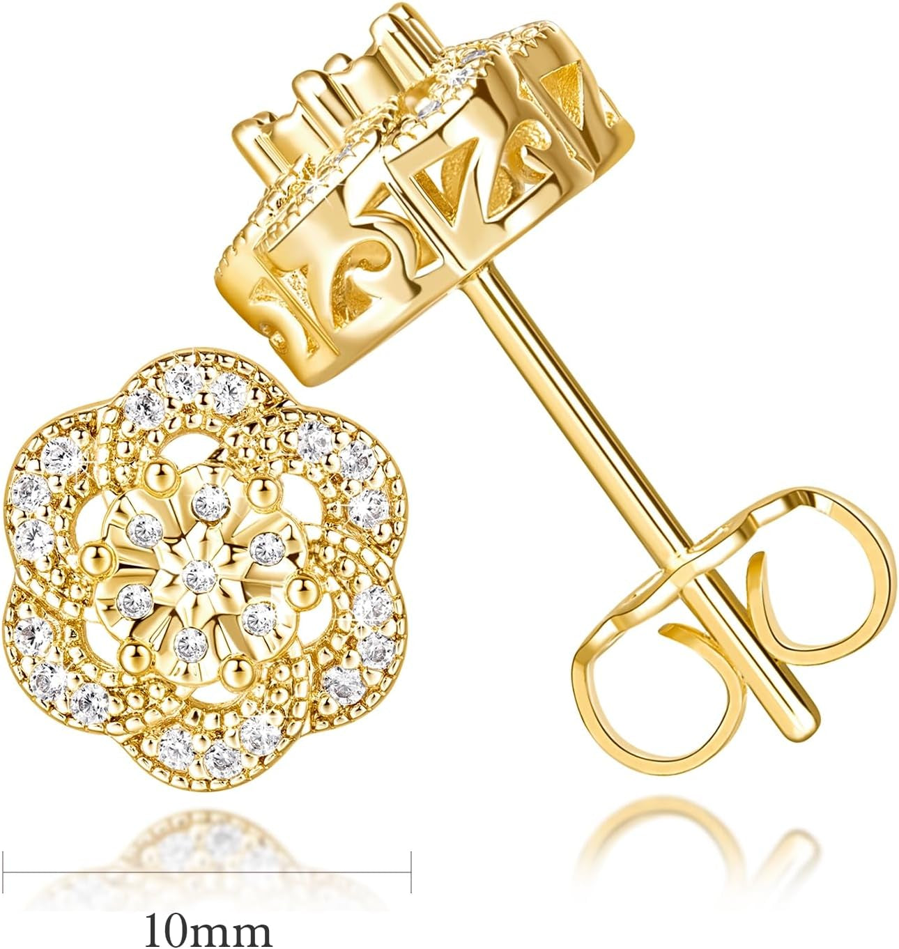 The studs are finished with 14K gold plating and feature sparkling cubic zirconia stones that give them a dazzling diamond-like sheen. Thanks to the hypoallergenic material , they are safe and comfortable for sensitive ears, even with daily wear.