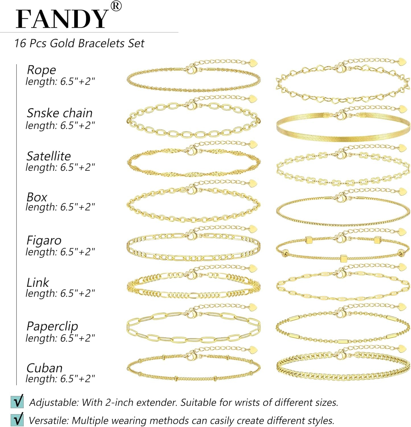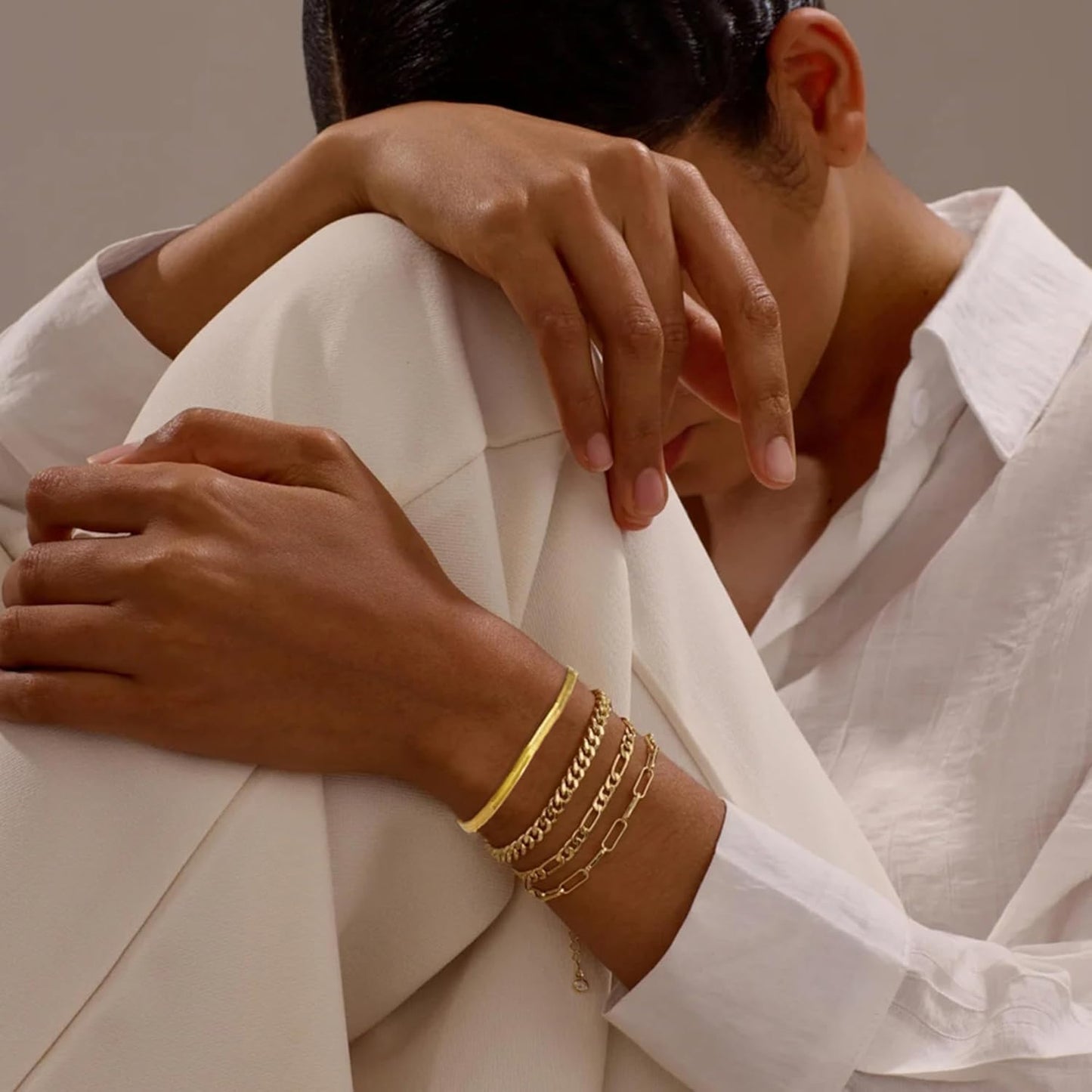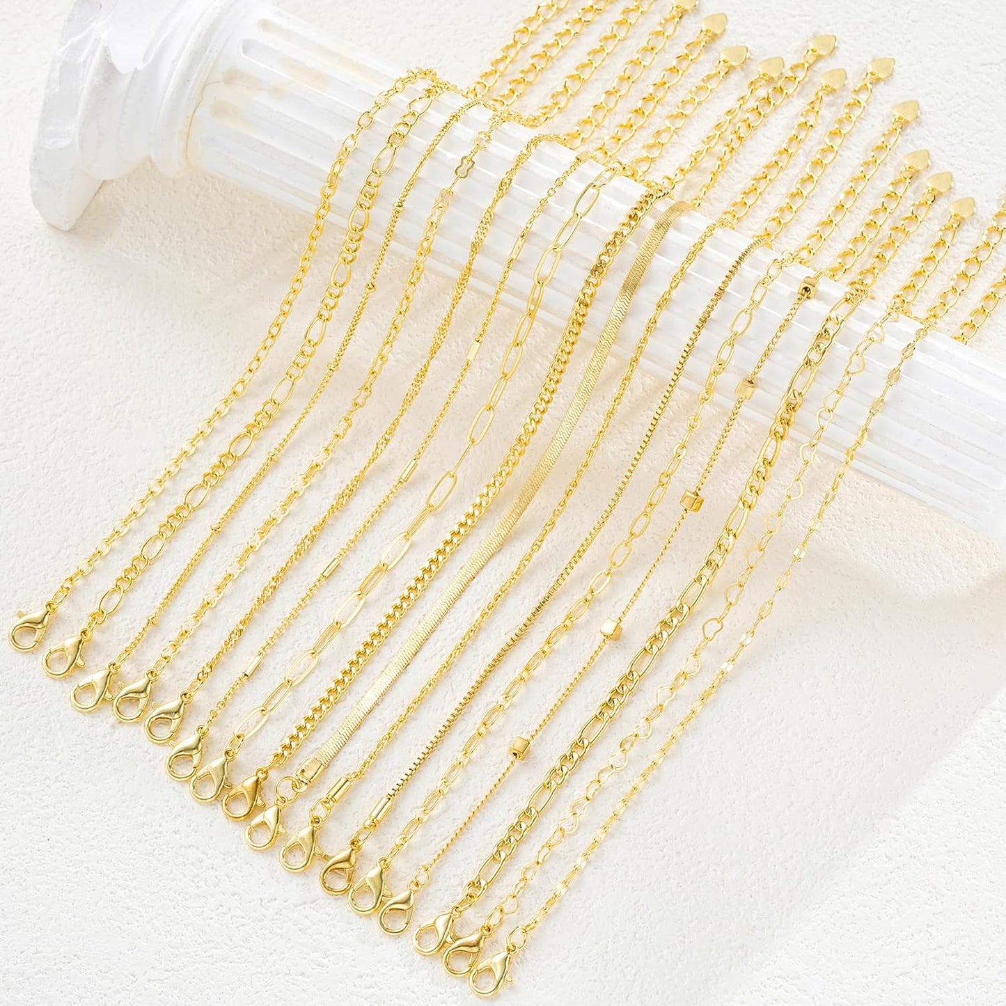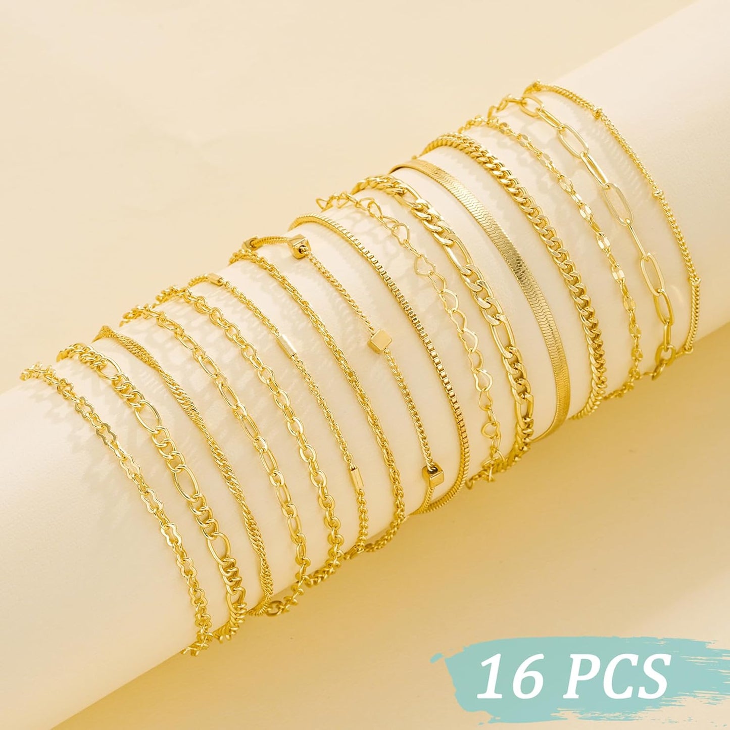 Elke armband is 14K gold plated, duurzaam en kleurvast, met ontwerpen zoals Cuban links, paperclip chains en subtiele lagen, zodat je eindeloos kunt combineren voor een persoonlijke stijl. Lichtgewicht en comfortabel, perfect voor dagelijks gebruik of speciale gelegenheden zoals werk, diners en feestjes.